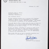 Tags: Autori, Carole~ Correspondence~ Science television programs~ Watson, James D., 1928-