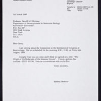 Tags: Brenner, Sydney~ Edelman, Gerald M.~ International Congress of Immunology~ Invitations~ Speeches, addresses, etc.