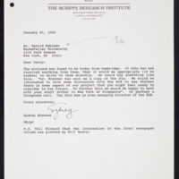 Tags: Brenner, Sydney~ California~ Edelman, Gerald M.~ Meetings~ Thank-you notes