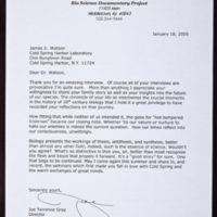 Tags: Correspondence~ Gray, Joe Terrence~ Interviews as Topic~ Watson, James D., 1928-