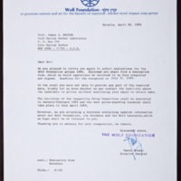 Tags: Advisory Committees~ Awards and Prizes~ Gruder, Yaron~ Thank-you notes~ Watson, James D., 1928-~ Wolf Foundation