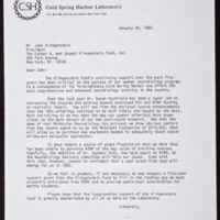 Tags: Cassel, Milton E.~ Hockfield, Susan~ Research Support as Topic~ Rita Allen Foundation~ Thank-you notes~ Watson, James D., 1928-