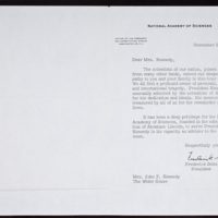 Tags: Death~ Kennedy, John F. (John Fitzgerald), 1917-1963~ National Academy of Sciences (U.S.)~ Onassis, Jacqueline Kennedy, 1929-1994~ Seitz, Frederick, 1911-2008