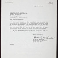 Tags: In Vitro~ Lectures and lecturing~ McAuslan, Brian R.~ Princeton University~ Watson, James D., 1928-