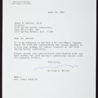 Tags: Bristol-Myers Company~ Correspondence~ Miller, William R.~ Watson, James D., 1928-