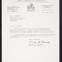 Tags: Brenner, Sydney~ Ciba Foundation~ O'Connor, Cecilia M.~ Thank-you notes