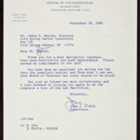 Tags: Luncheons~ O'Neil, John J.~ Thank-you notes~ Watson, James D., 1928-