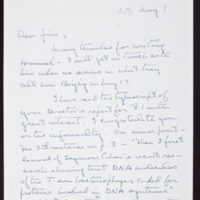Tags: Correspondence as Topic~ Howard Florey Biomedical Foundation~ Page, Walter H.~ Watson, James D., 1928-
