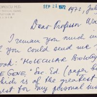 Tags: Books~ Correspondence~ Fan mail~ Popescu, Stefan~ Watson, James D., 1928-