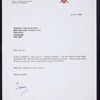 Tags: Brenner, Sydney~ Invitations~ Luzzatto, Lucio~ Royal Postgraduate Medical School~ Travel