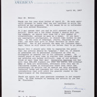 Tags: Flanagan, Dennis, 1919-2005~ Gilbert, Walter, 1932-~ Protein Biosynthesis~ Publishing~ Scientific American, Inc.~ Watson, James D., 1928-
