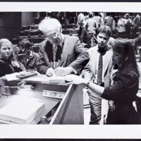 Photographs from James D. Watson's visit to the University of Alabama at Birmingham. Photographs include Watson signing autographs, Watson touring the University and Watson with James A. Pittman, Jr., G.C. Luketic, Paul A. Palmisano, Jimmy D. Neill,…