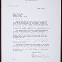 Tags: Correspondence~ Speeches, addresses, etc.~ University of Utah~ Watson, James D., 1928-
