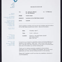 Tags: Correspondence~ Meetings~ Wall Street Journal (Firm)~ Watson, James D., 1928-