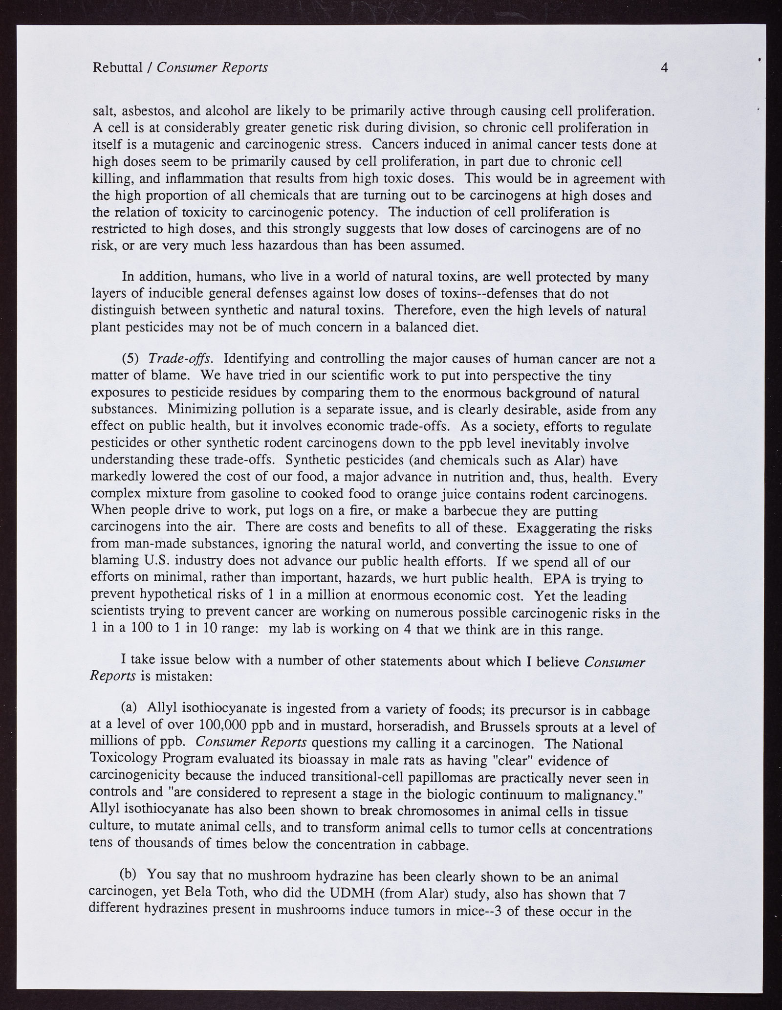 "Rebuttal To 'Too Much Fuss About Pesticides?'" by Bruce N. Ames