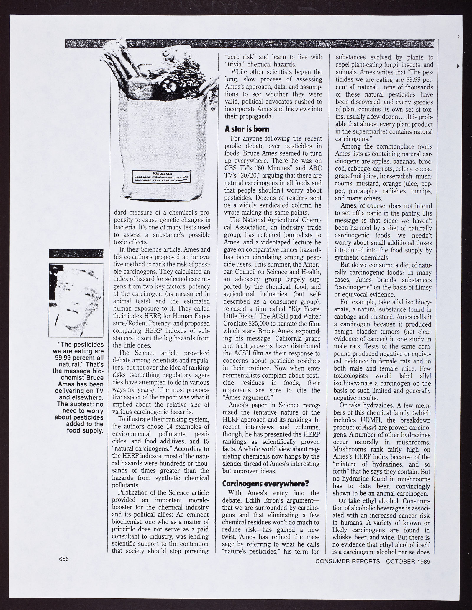 Consumer Reports article: "Too Much Fuss About Pesticides?"
