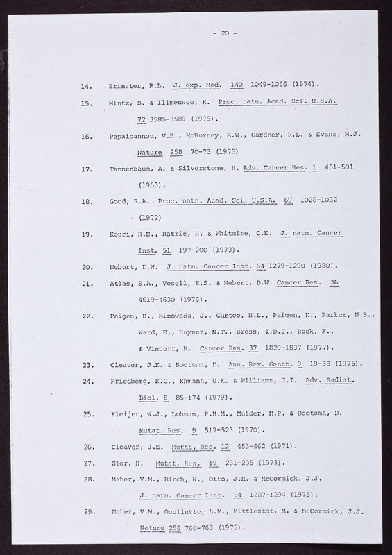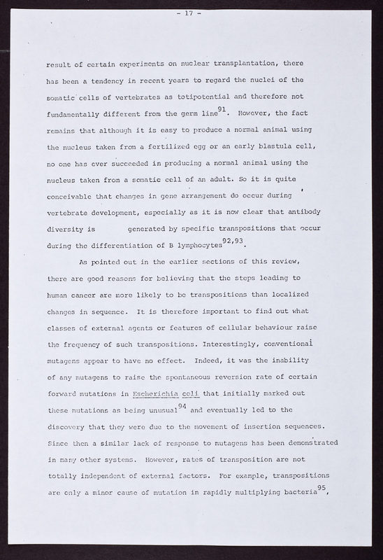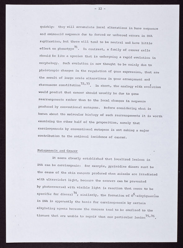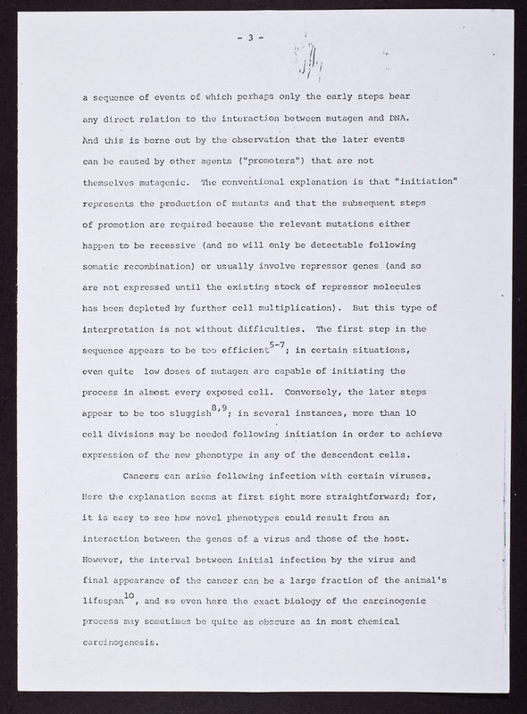 Paper: "On the origin of human cancers" by John Cairns. Features a handwritten note from John Cairns to James D. Watson