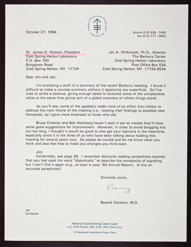 Item JDW/2/2/347: Clarkson, Bayard (Memorial Sloan-Kettering Cancer Center) (2 of 2) (1990-1995)