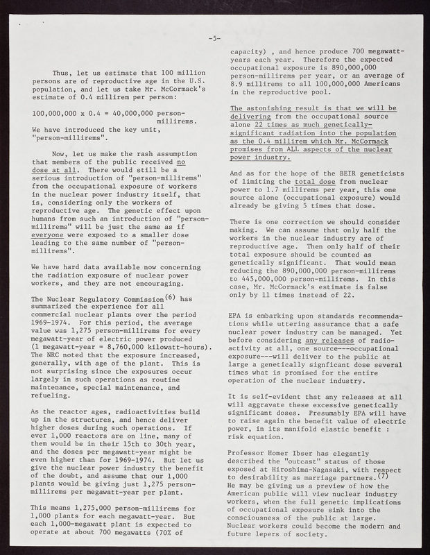 "Radiation Doses and Effects in a Nuclear Power Economy: Myths vs. Realitites" by John W. Gofman