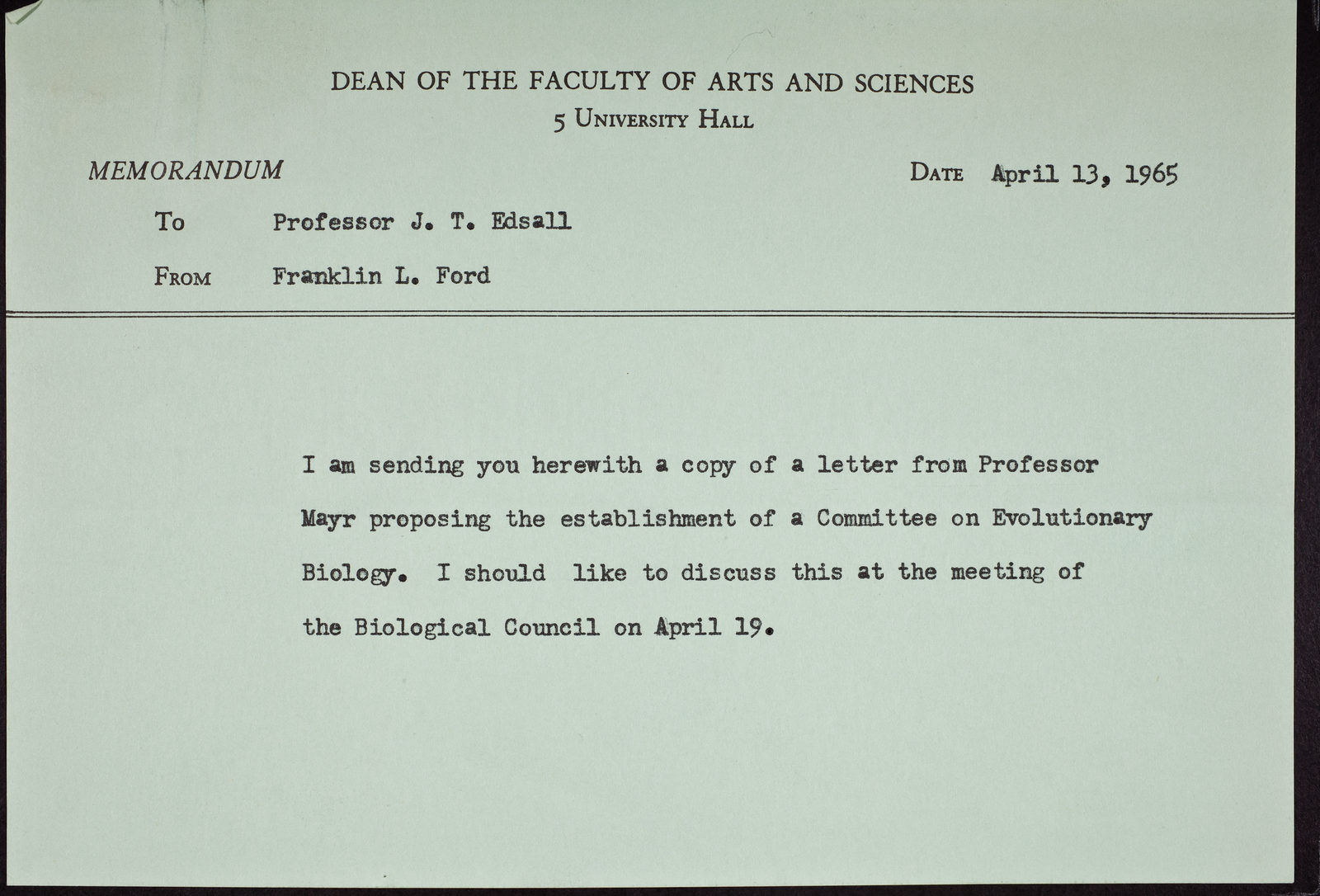 Memorandum from Franklin L. Ford to J.T. Edsall