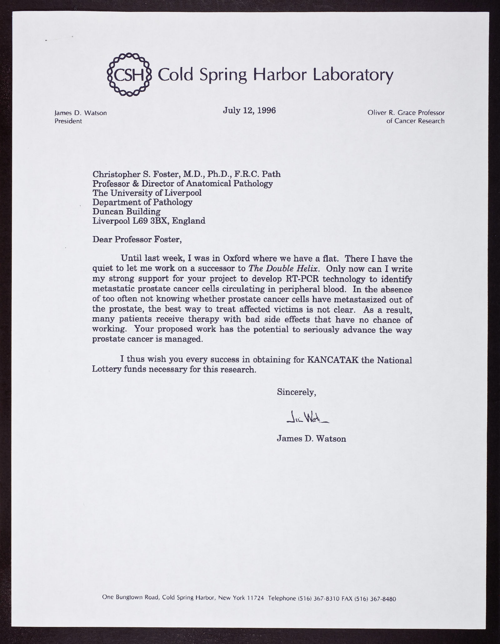 Copy of letter from James D. Watson to Christopher S. Foster