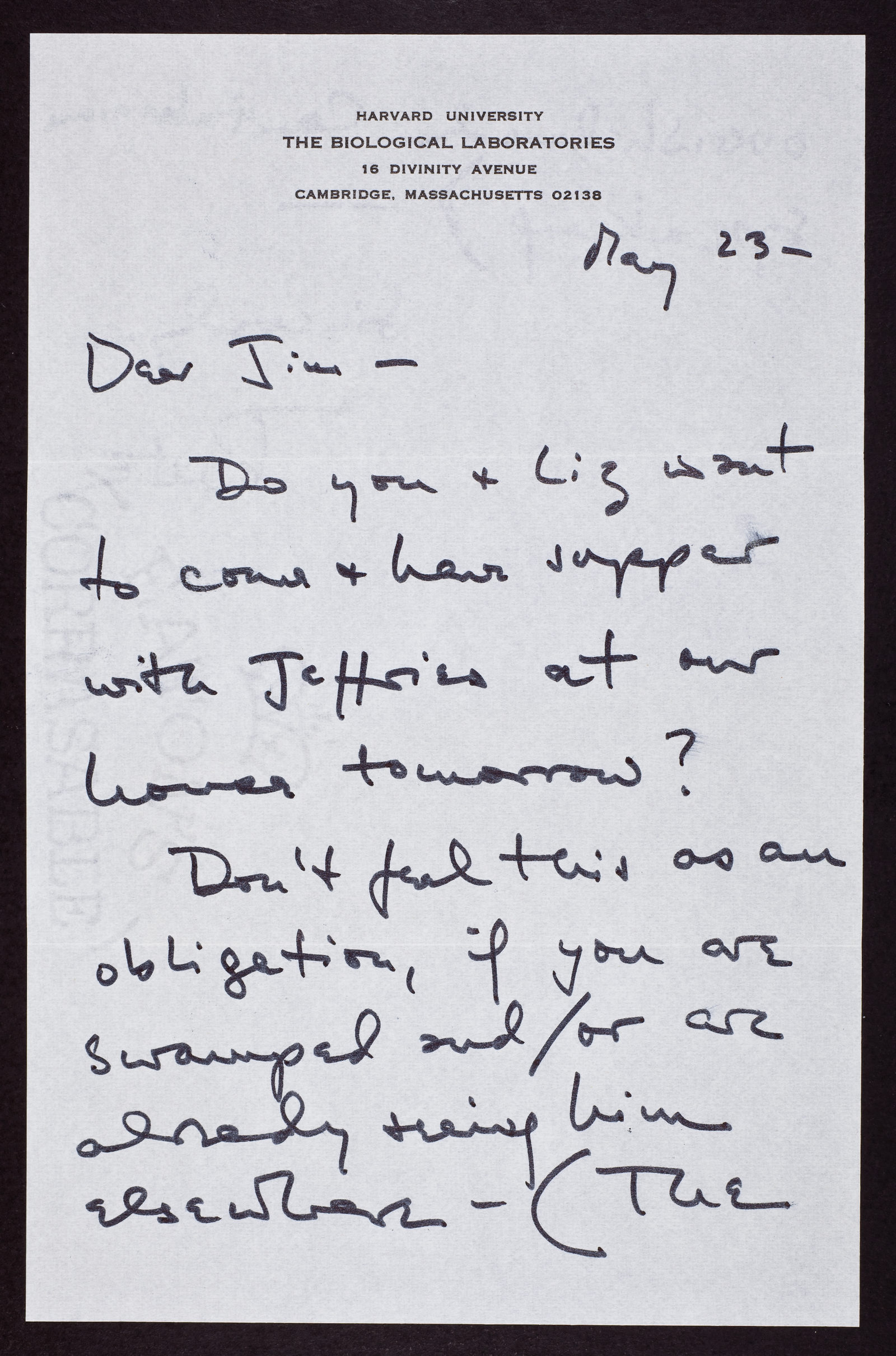 Handwritten letter from Ruth Hubbard to James D. Watson