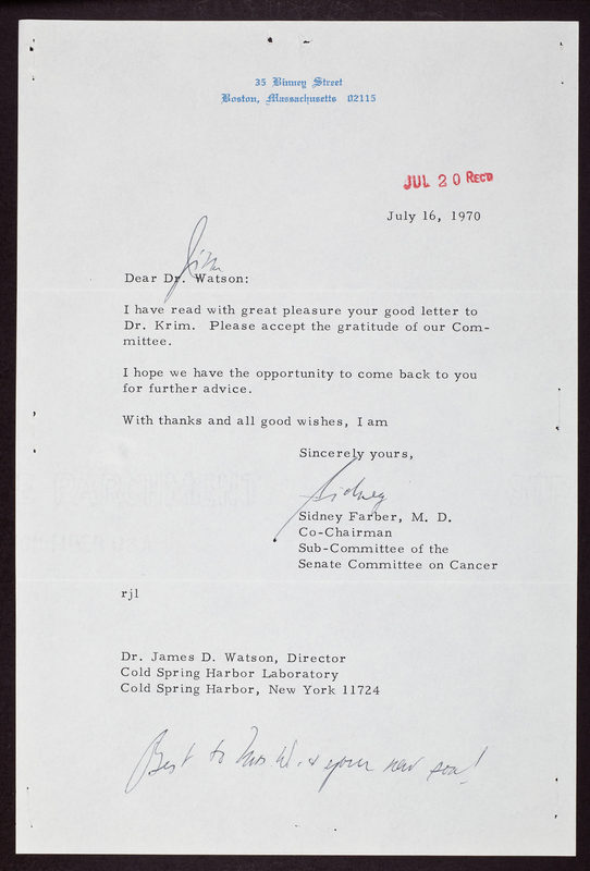 Item JDW/2/2/1015: Krim, Mathilde (Sloan Kettering Institute for Cancer Research) (1970-1986)