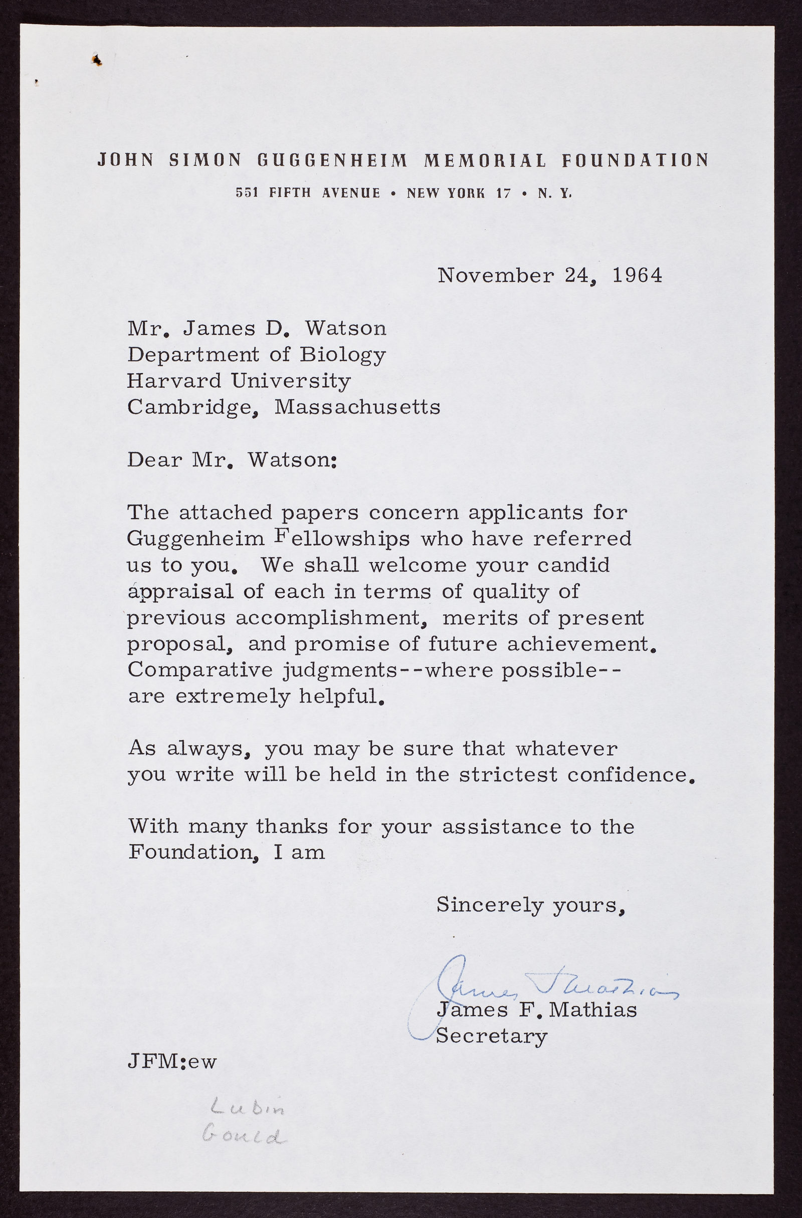Letter from James F. Mathias to James D. Watson