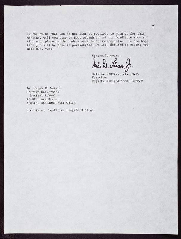 Letter from Milo D. Leavitt, Jr. to James D. Watson