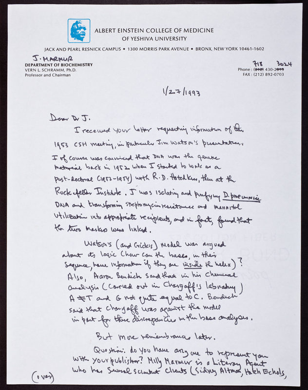 Letter from Julius Marmur to Joe Sambrook [?]
