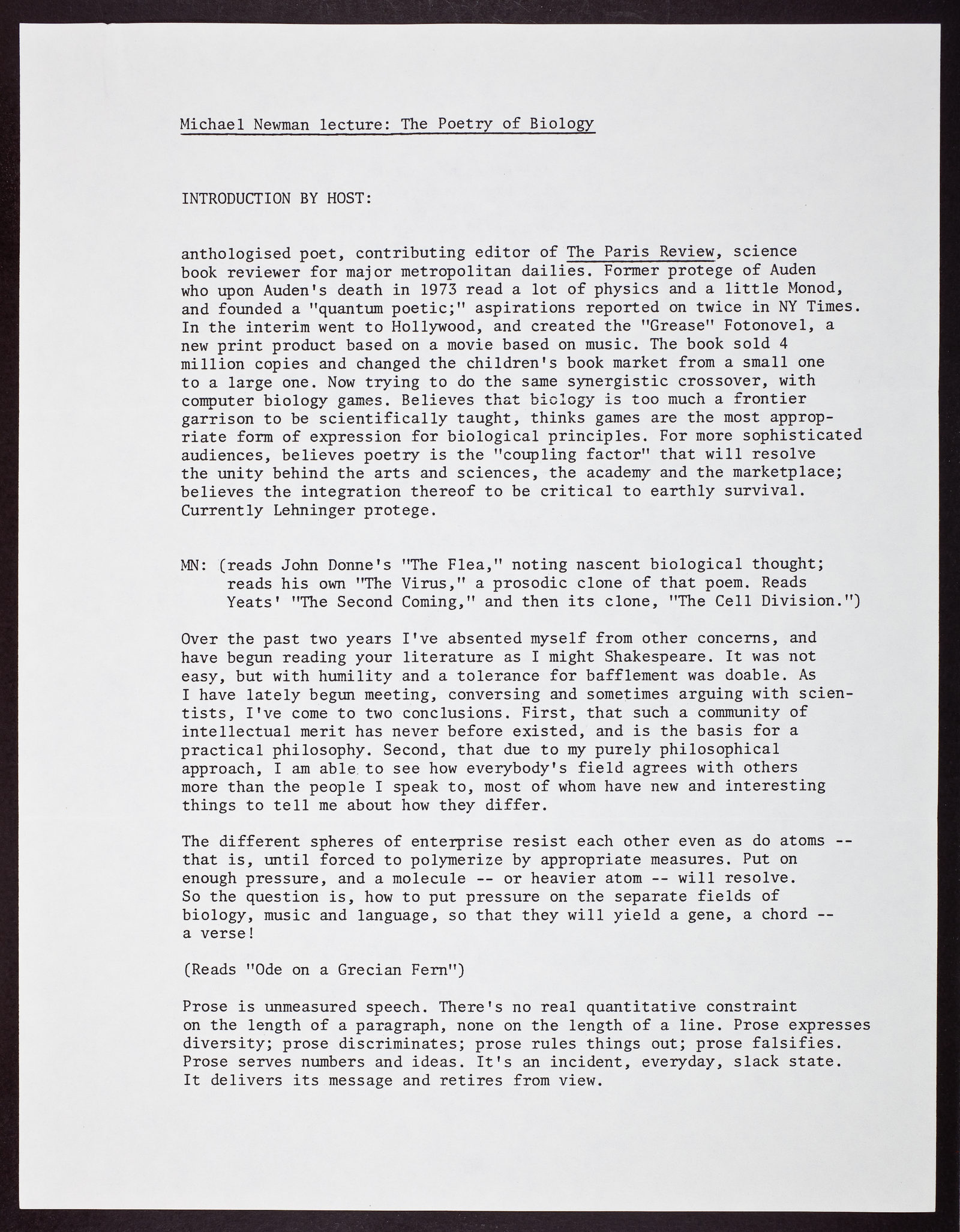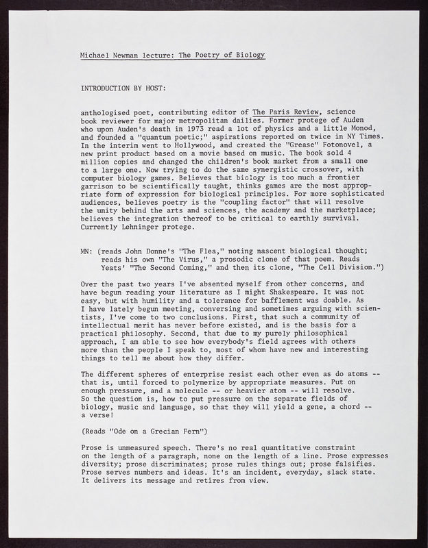 Item JDW/2/2/1306: Newman, Michael (Warm Spring Harbor Laboratory) (1 of 2) (1981-1983)