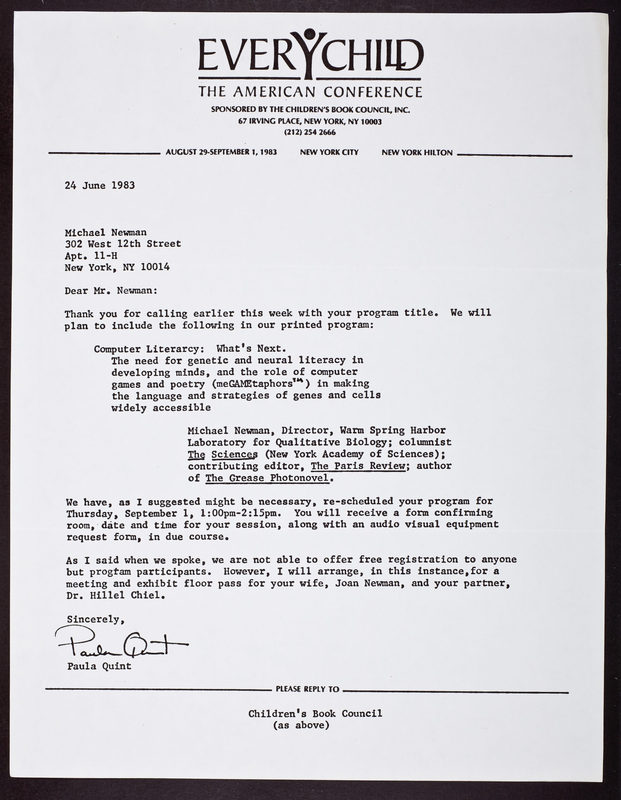 Item JDW/2/2/1306: Newman, Michael (Warm Spring Harbor Laboratory) (1 of 2) (1981-1983)