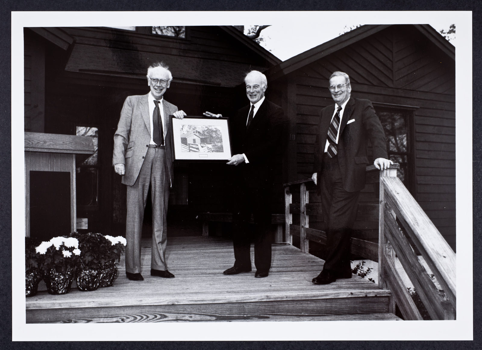 Includes Watson, Henry Wendt, Bayard D. Clarkson, and David L. Luke III (CSHL Board of Trustees members). Photograph by Margot Bennett.