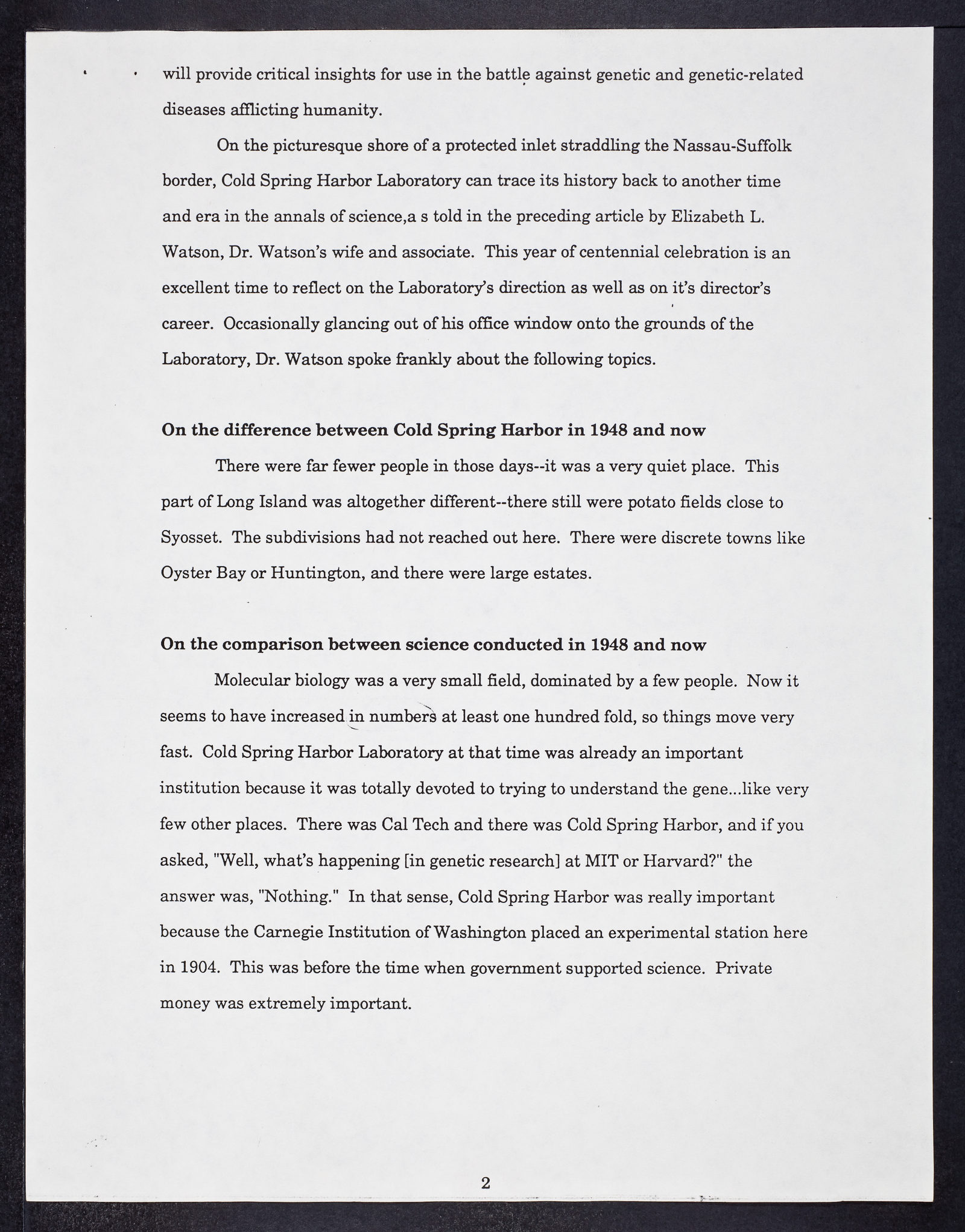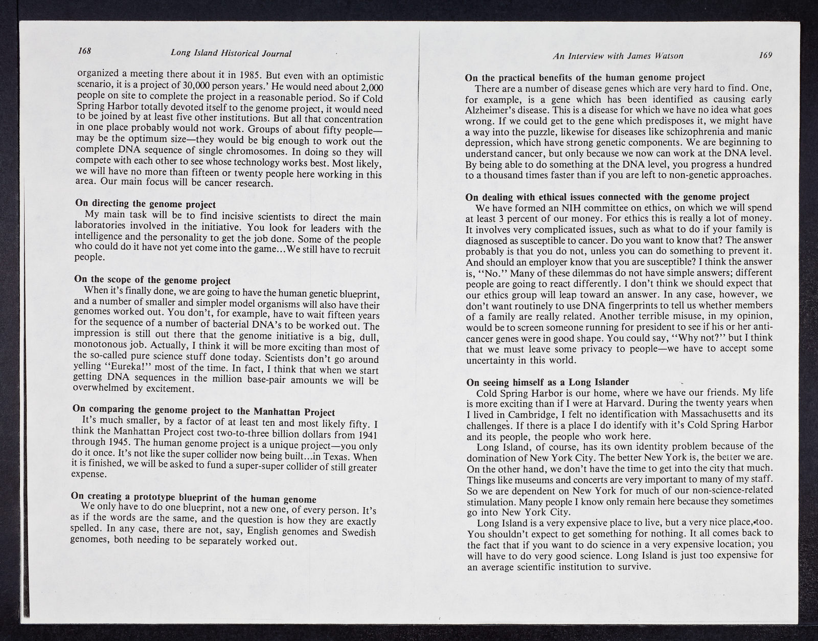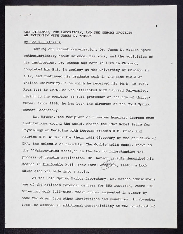 The Director, The Laboratory, and the Genome Project: An Interview with JDW, by Lee R. Hiltzik