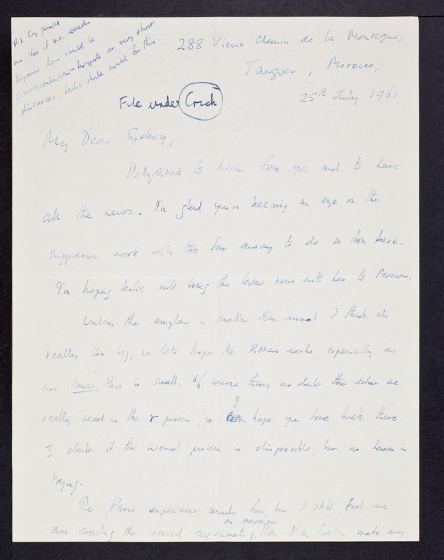 Handwritten letter from Francis Crick to Sydney Brenner