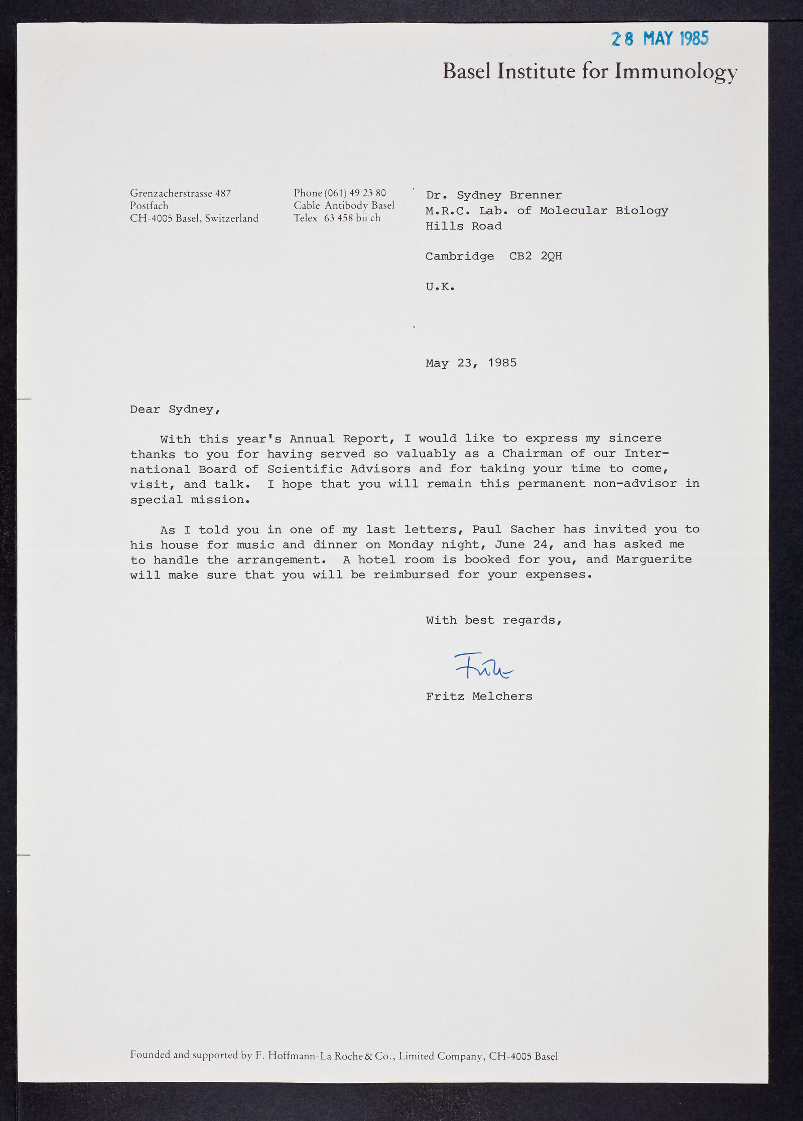 Item SB/1/1/413: Melchers, Fritz (Basel Institute for Immunology) (1981-1988)