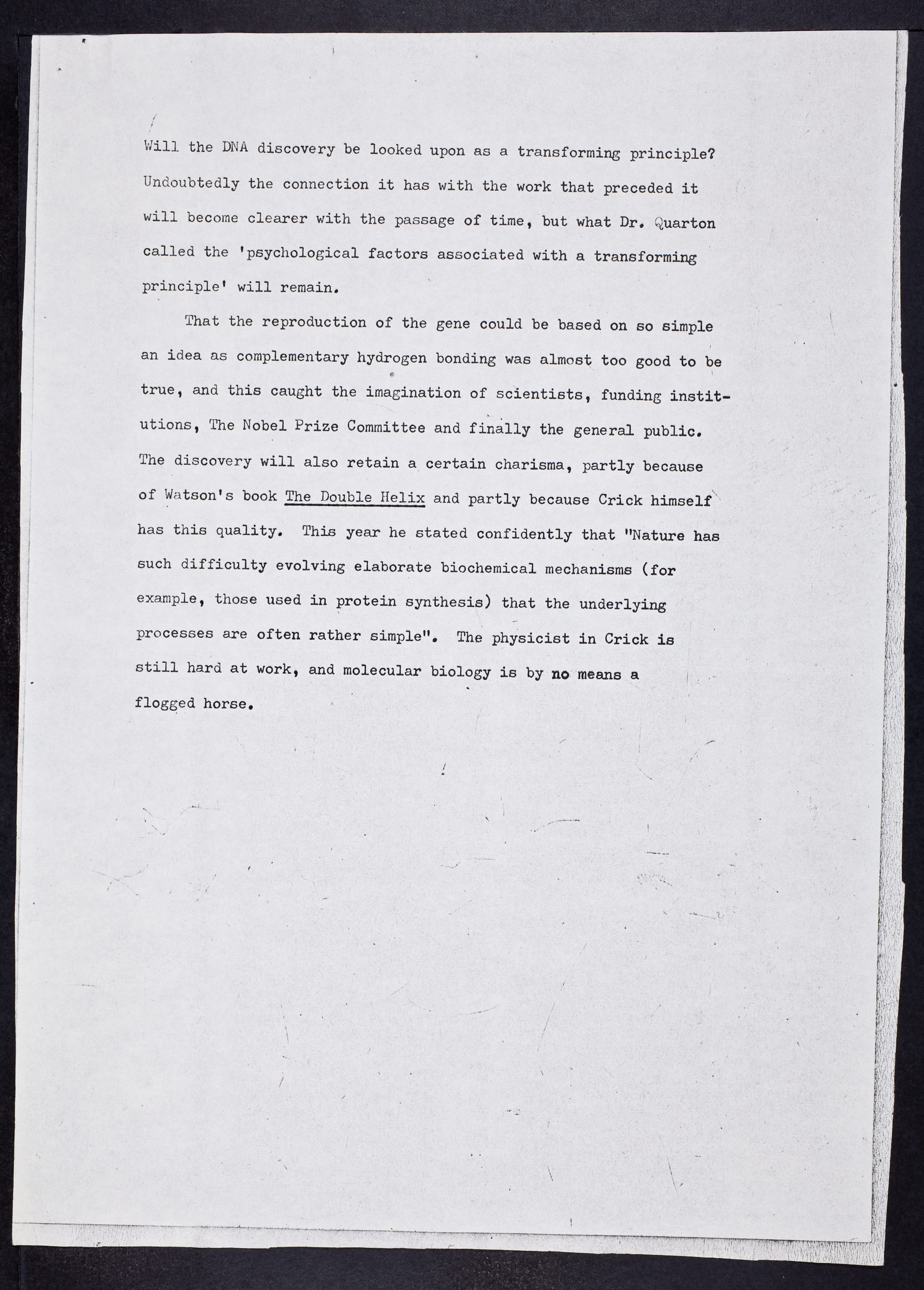 Enclosure of Robert Olby's manuscript about Crick and Brenner.