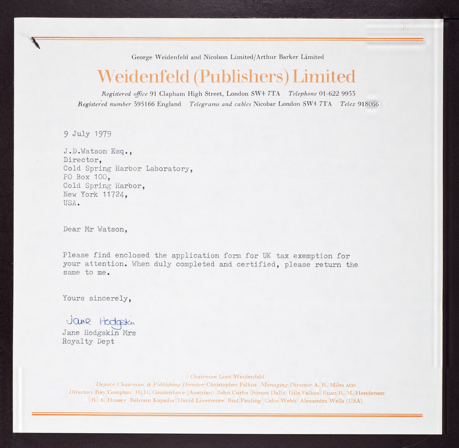Correspondence: Publishers: UK Tax Exemption