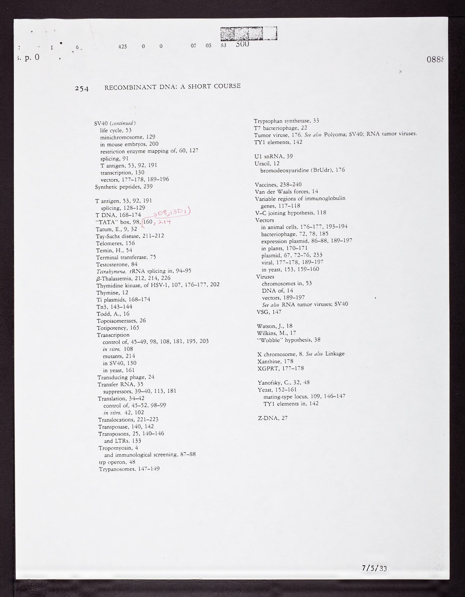 Subseries JDW/2/3/10: Recombinant DNA, 1st Edition (1973-1994)