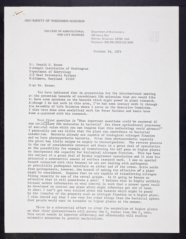 Item SB/1/2/43: Asilomar Meeting on Biohazards (1974)