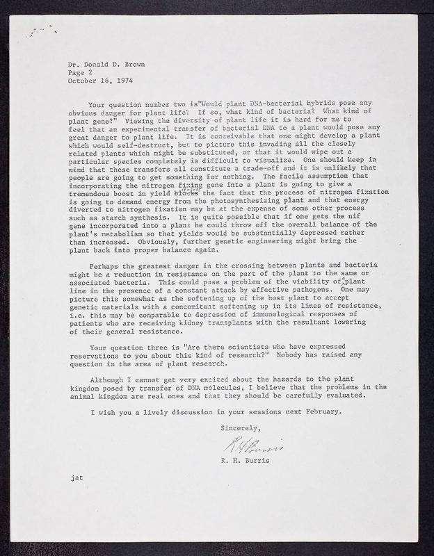 Letter from R. H. Burris to Donald D. Brown
