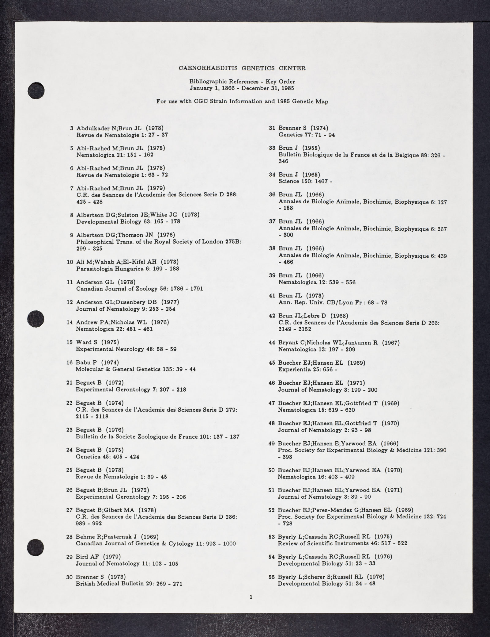 Caenorhabditis Elegans Genetics Center Bibliography