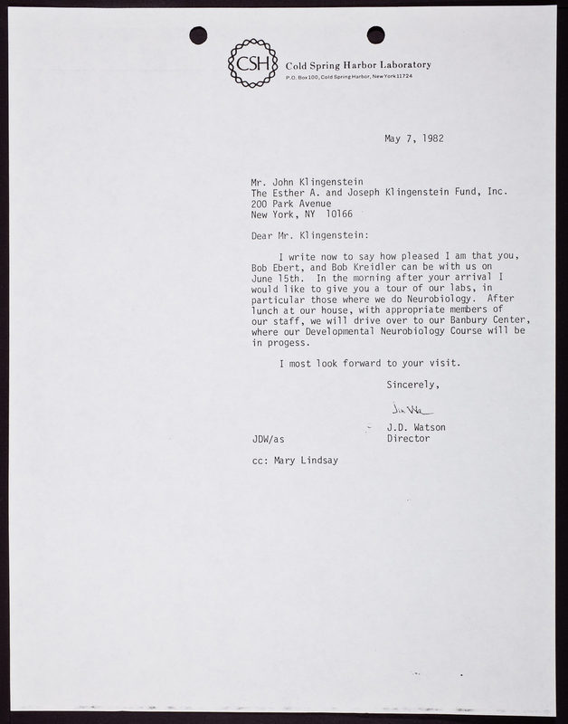 Letter from James D. Watson to John Klingenstein
