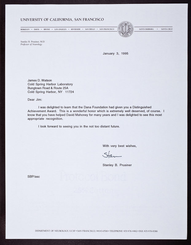 Item JDW/2/2/1448: Prusiner, Stanley B. (1992-1997)