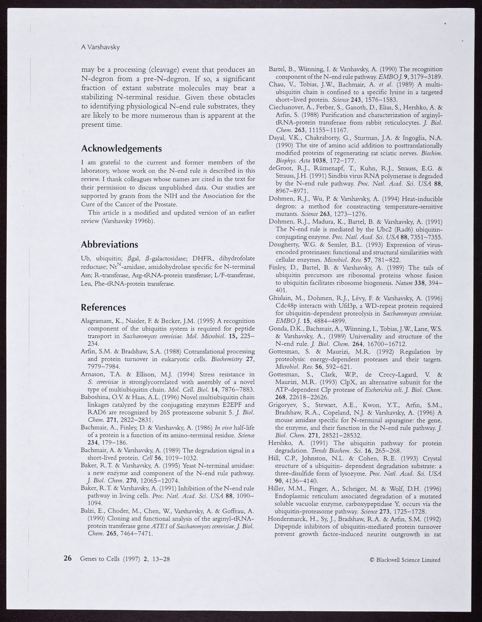 Genes to Cells article: "The N-end rule pathway of protein degradation" by Alexander Varshavsky