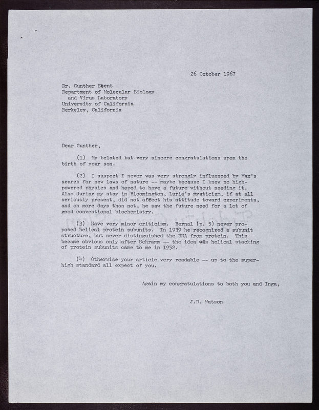 Item JDW/2/2/1738: Stent, Gunther S. (1949-1971)