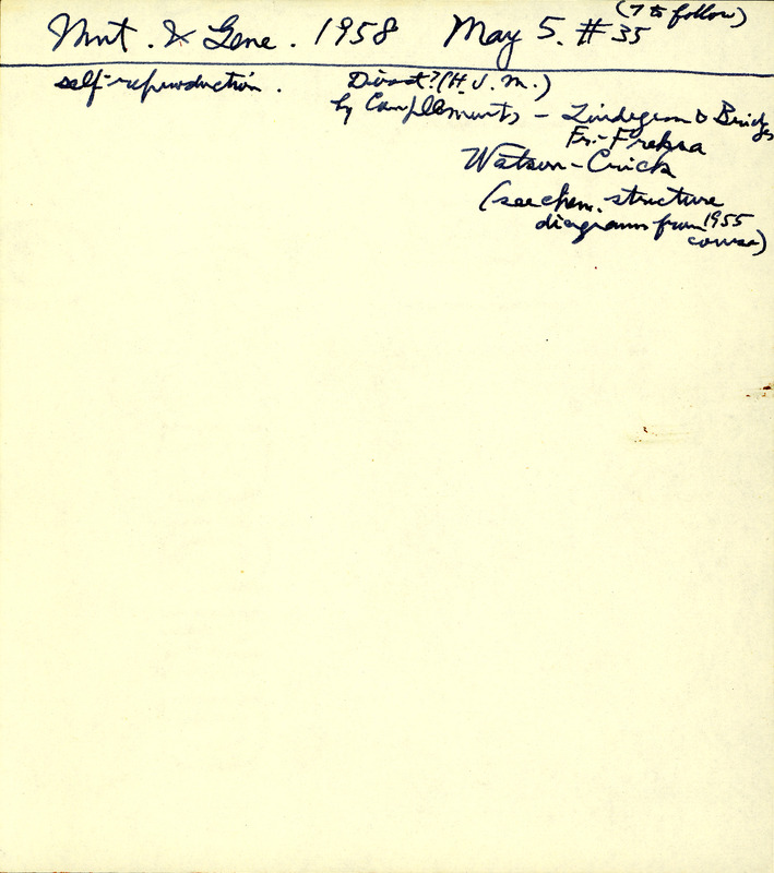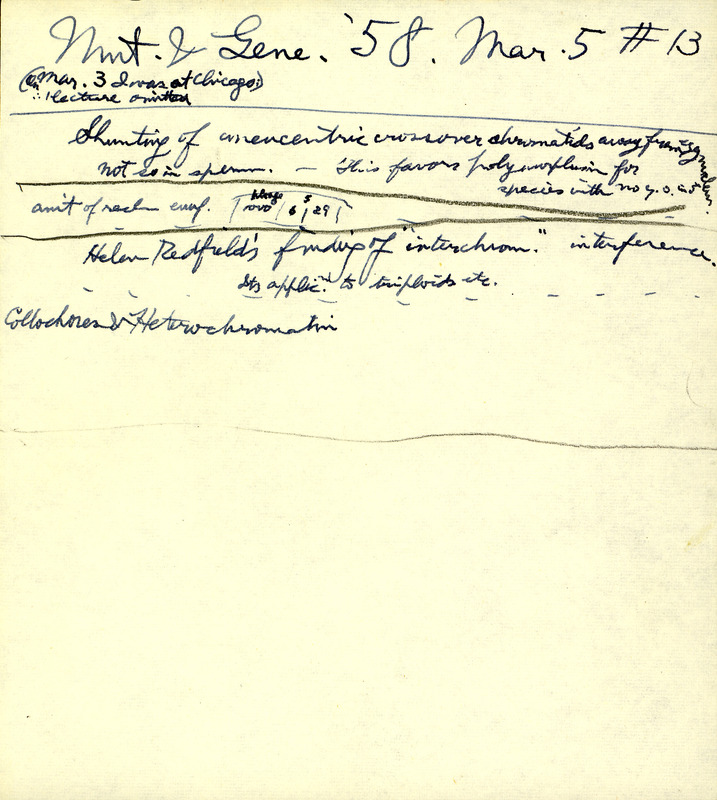 Handwritten notes and exam questions from Hermann J. Muller course, Mutation and the Gene, at Indiana University, 1958
