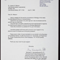 Tags: Employment references~ Greece~ Vamvakopoulos, Nikos Constantinos~ Watson, James D., 1928-
