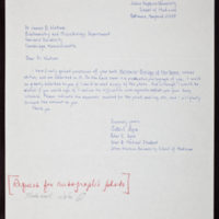 Tags: Agre, Peter, 1949-~ Autographs~ Fan mail~ Nobel Prize winners~ Watson, James D., 1928-