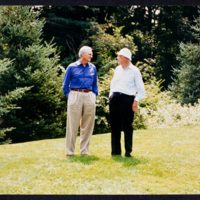 Photographs of Alan Alda's interview with James D. Watson for Scientific American Frontiers "The Gene Hunters." Photographs were taken at Cold Spring Harbor Laboratory and the DNA Learning Center. Also includes contact sheets. Photographs by Miriam…